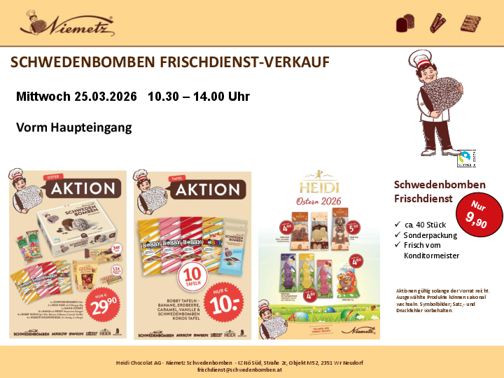 wieder der SCHWEDENBOMBEN FRISCHDIENST-VERKAUF statt.