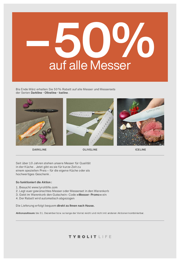 - 50% auf alle Messer bis Jahresende solange der Vorrat reicht