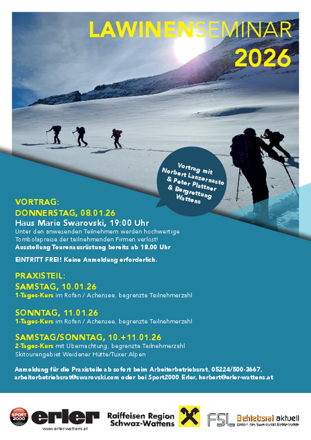 Auch im Jahr 2026 findet wieder das beliebte Lawinenseminar statt.
